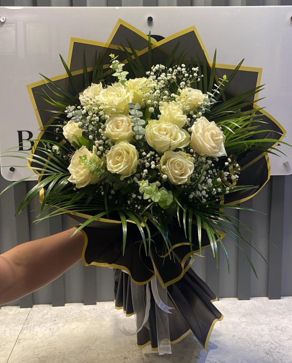 ***Beyaz Gülden Buket 'da kullanılan çiçek ve aksesuarlar stok durumuna göre farklılık gösterilebilir.