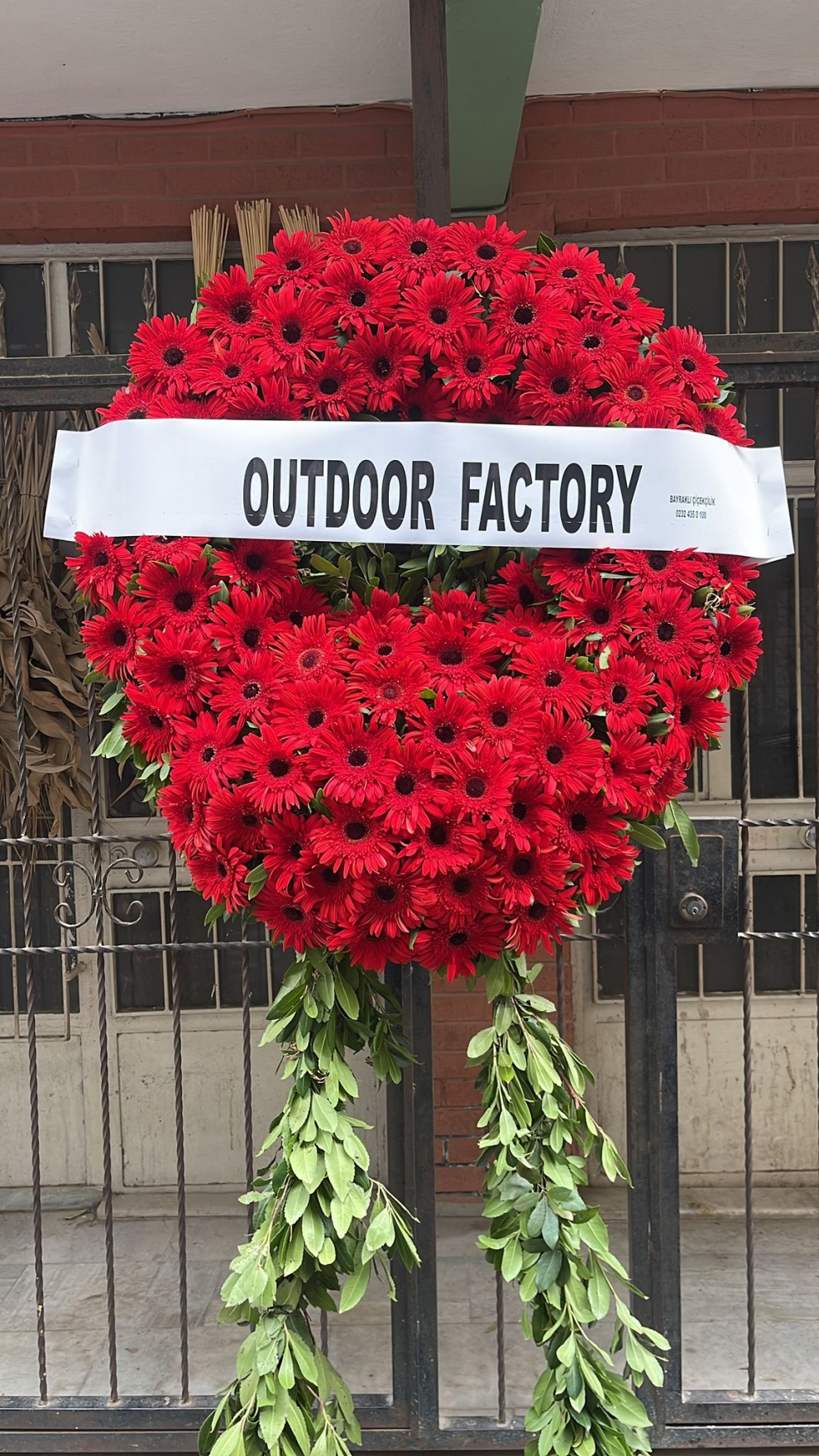 100 adet kırmızı gerberadan hazırlanmış kasnak cenaze çelengi