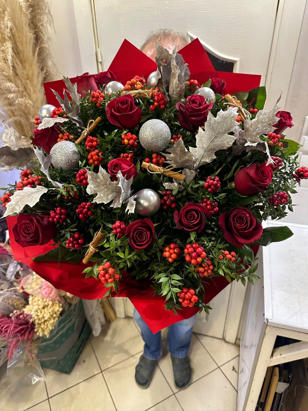 7 demet kokina, 13 adet kırmızı gül ve garnetürler ile süslenmiş mega boy kokina buket, stok durumuna göre garnetürler değişilik görülebilir renk tonlarından değişiklik olabilir.